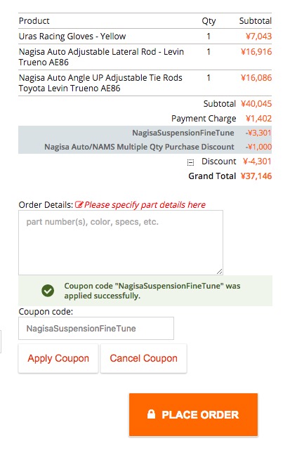 More big campaigns bringing pricing discounts like never before. Fine tune handling with at least a 10% discount on all links, rods and arms from Nagisa Auto!